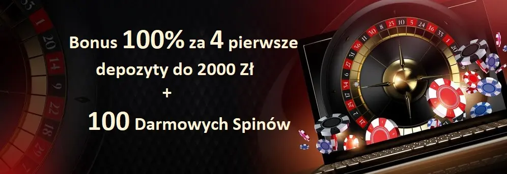 Bonus powitalny Otrzymaj 100% bonusu na pierwszy depozyt do 2000 PLN + 100 darmowych spinów, aby rozpocz膮膰 swoj膮 przygod臋! Starburst, Book of Dead, Gonzo's Quest, Wolf Gold, Mega Moolah, Reactoonz, Cleopatra, Thunderstruck, Twin Spin